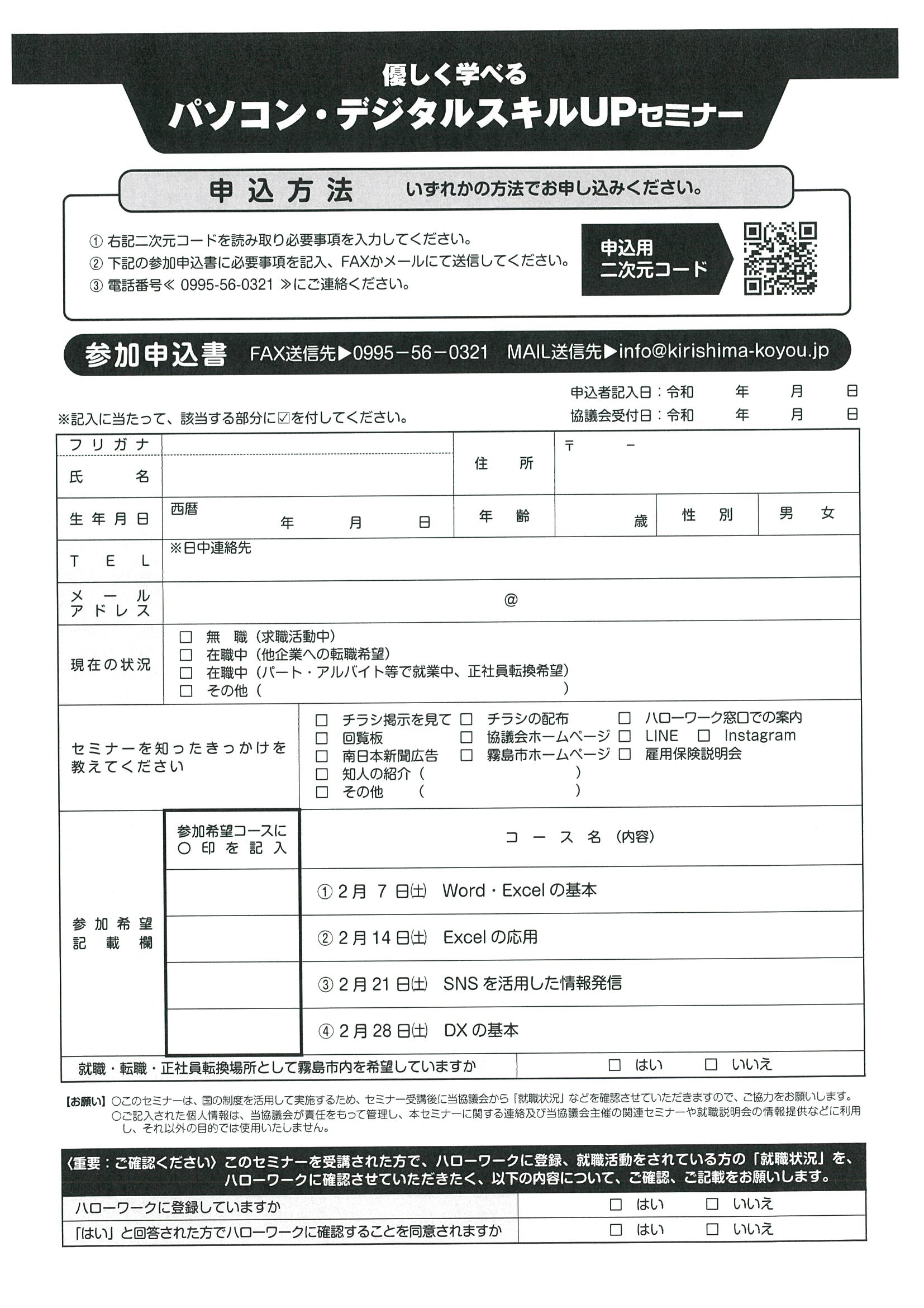 「パソコンスキルを磨きたい!」「SNSやDXにも興味がある」霧島市内の事業所で働きたい方を対象とした